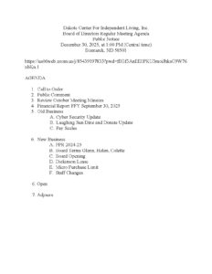 Board Meetings are regularly scheduled every other month at 1:00 pm CT and are held at DCIL, 3111 E. Broadway Ave., Bismarck, ND.